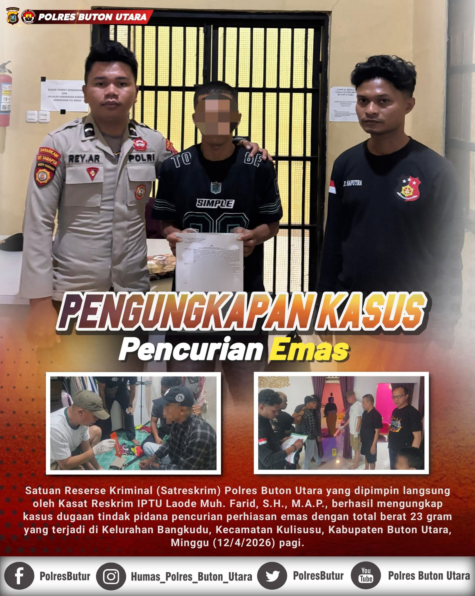 Satreskrim Polres Butur Amankan Pelaku Pencurian Emas 23 gram