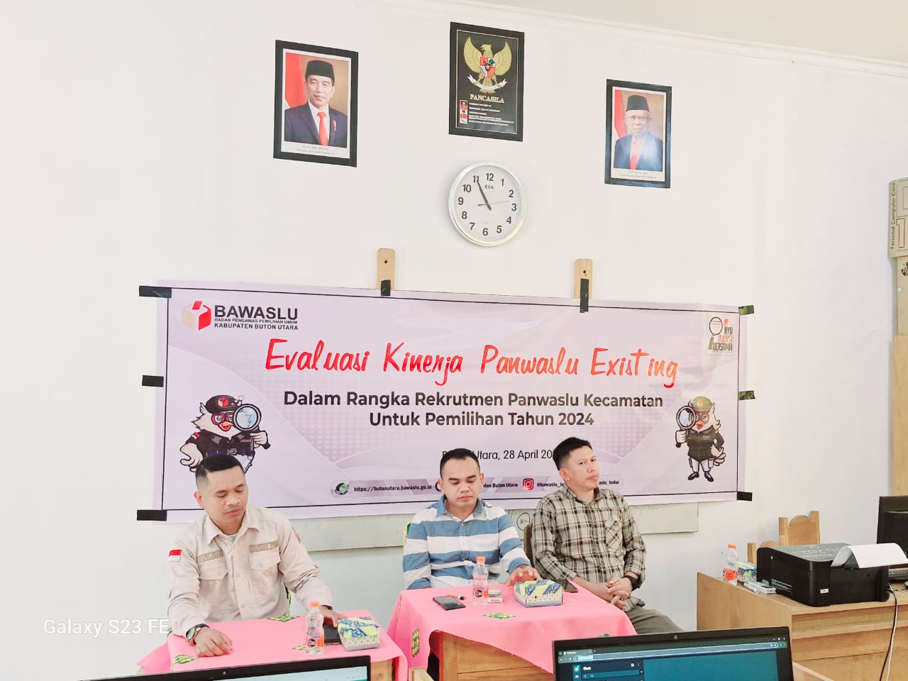 Penilaian Evaluasi kinerja, dihadiri langsung Ketua Bawaslu Buton Utara, Yayan Irawan, S.H.,M.H yang juga Ketua Kelompok Kerja (Pokja) Pembentukan Panwaslu Kecamatan Pemilihan Tahun 2024, Kordinator Divisi Hukum, Pencegahan Partisipasi Masyarakat , dan Humas Bawaslu Butur Abdul Haris, S.IP dan Kordintor Divisi Penanganan Pelanggaran dan Penyelesaian Sengketa Bawaslu Butur Musliman, S.Pd.,SD