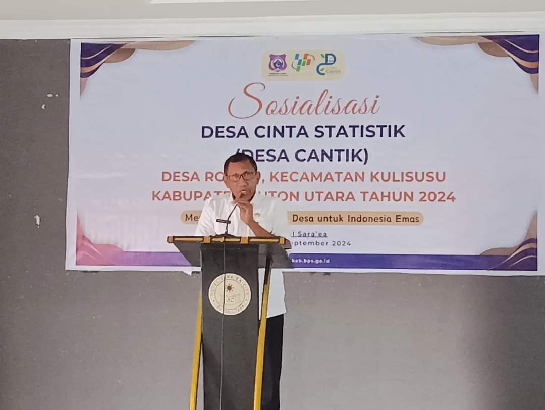 Asisten bidang Pembangunan dan Ekonomi, Sahrun Akri, SP, M.Si dalam sambutannya menjelaskan bahwa pada tahun 2024 ini, BPS kembali menyelenggarakan Program Desa Cantik, dan yang terpilih yaitu Desa Rombo, Kecamatan Kulisusu mewakili seluruh desa/kelurahan di Kabupaten Buton Utara untuk dijadikan lokus pembinaan Program Desa Cinta Statistik, imbuhnya.