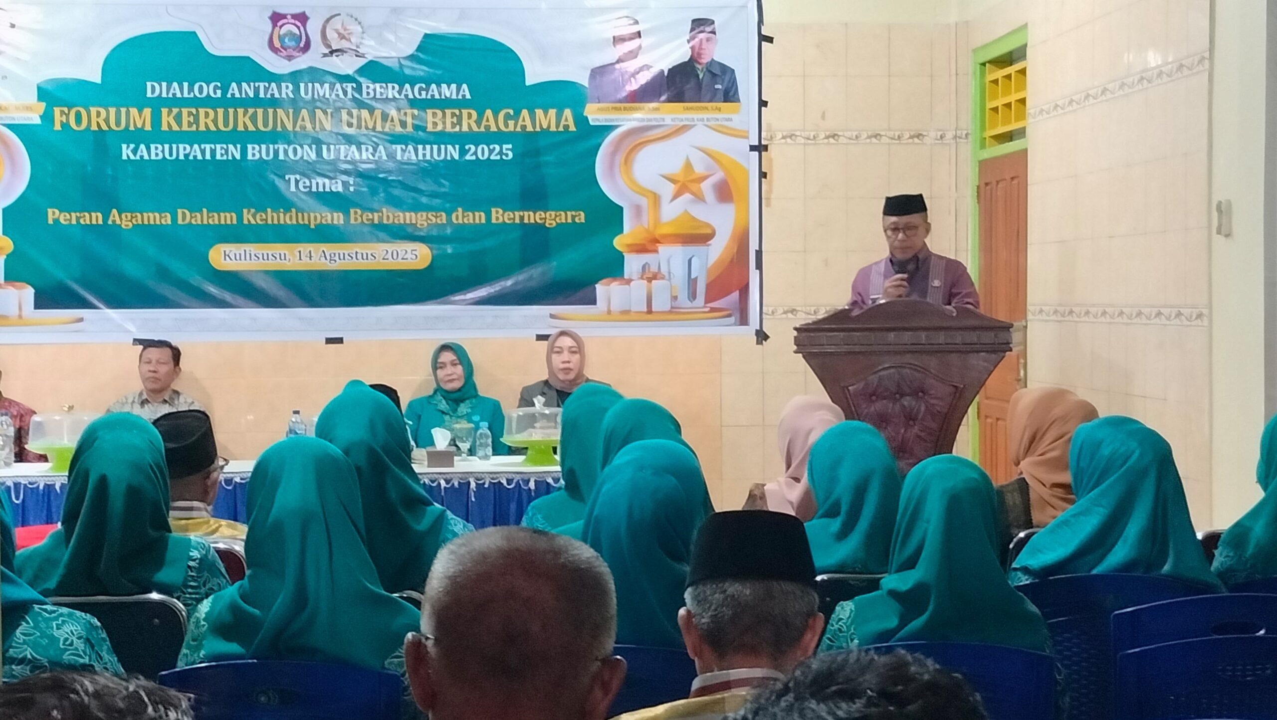 SEPUTARSULTRA.COM-Bupati Buton Utara (Butur) membuka dengan resmi dialog Antar Umat Beragama yang diselenggarakan oleh Forum Kerukunan Umat Beragama (FKUB) Kabupaten Buton Utara (Butur), bekerjasama dengan TP. PKK Butur, di Hotel Lenlin Kulisusu. Kamis, 14 Agustus 2025