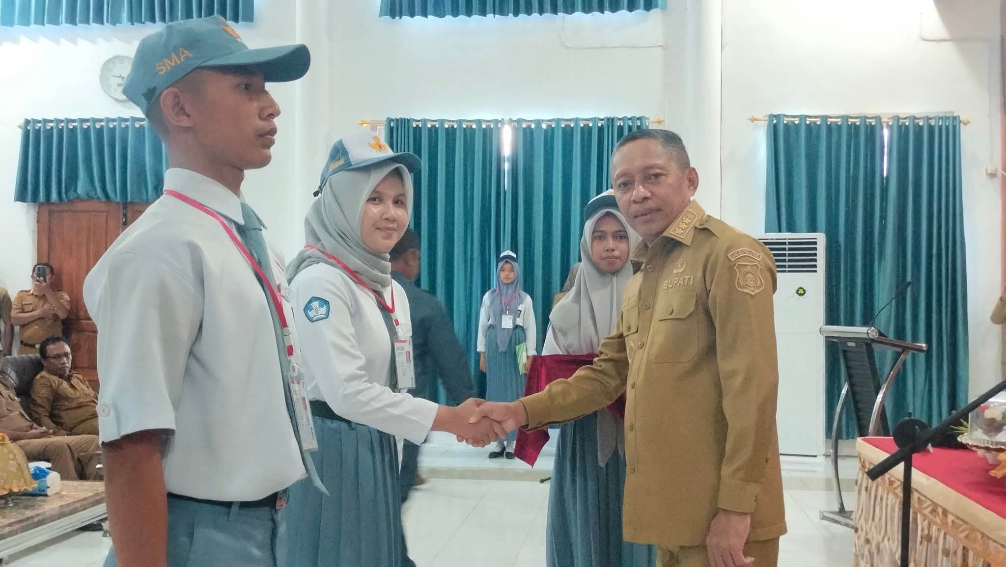 SEPUTARSULTRA.COM-Bupati Buton Utara Afirudin Mathara, SH.,MH. membuka kegiatan Pemusatan Latihan Pasukan Pengibar Bendera Pusaka (Paskibraka) Tingkat Kabupaten Buton Utara dalam rangka memperingati Hari Ulang Tahun (HUT) ke-80 Kemerdekaan Republik Indonesia (RI) Tahun 2025 di Aula Bappeda Kabupaten Buton Utara, Senin (4/8/2025).