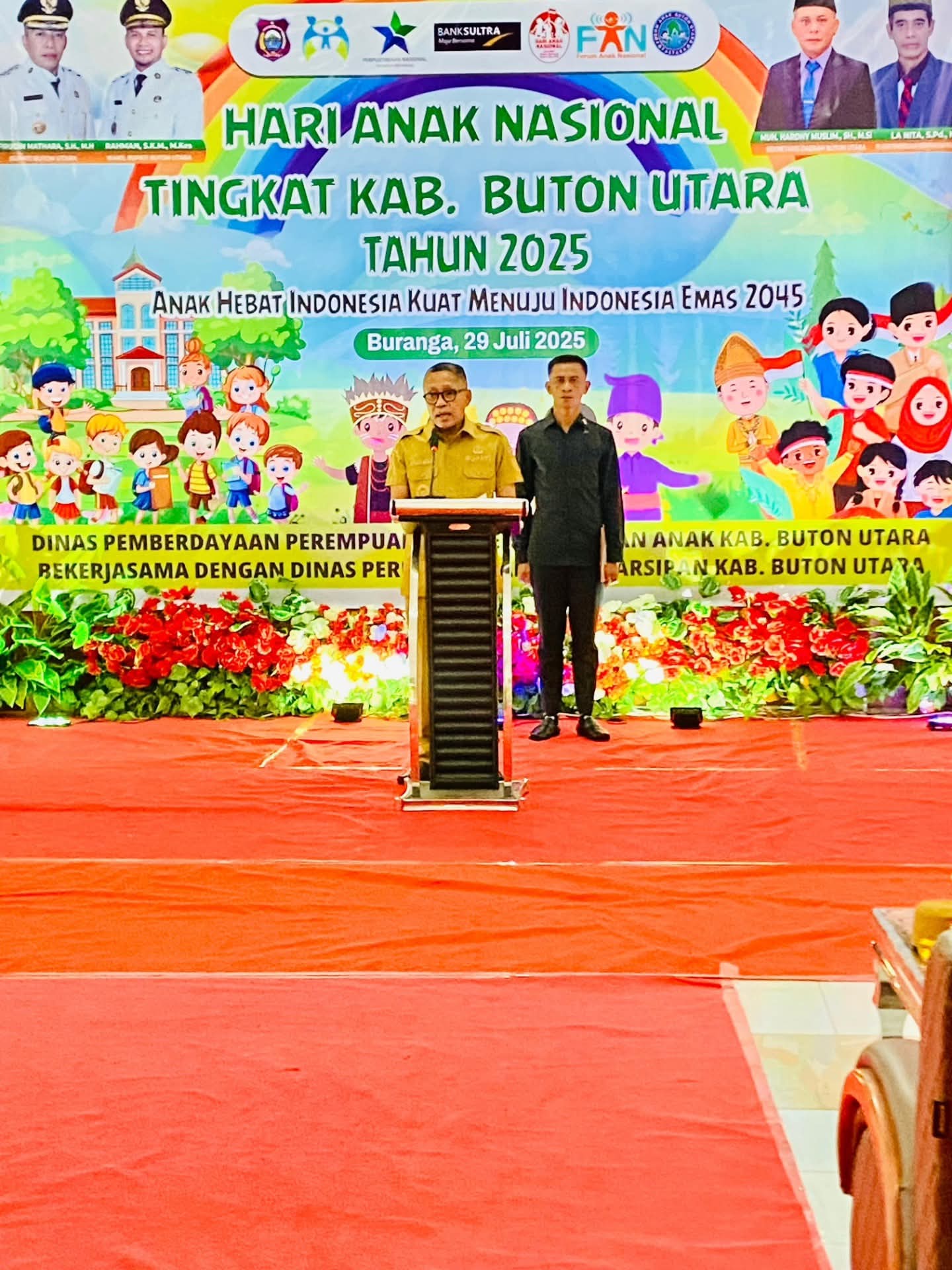 SEPUTARSULTRA.COM-Dinas Pemberdayaan Perempuan dan Perlindungan Anak bekerja sama dengan Dinas Perpustakaan dan Kearsipan Kabupaten Buton Utara menggelar peringatan Hari Anak Nasional(HAN)Tahun 2025 yang dihadiri para Pemangku kepentingan dalam menjaga dan melindungi hak-hak anak bertempat di Aula Bappeda, Selasa, 29 Juli 2025.