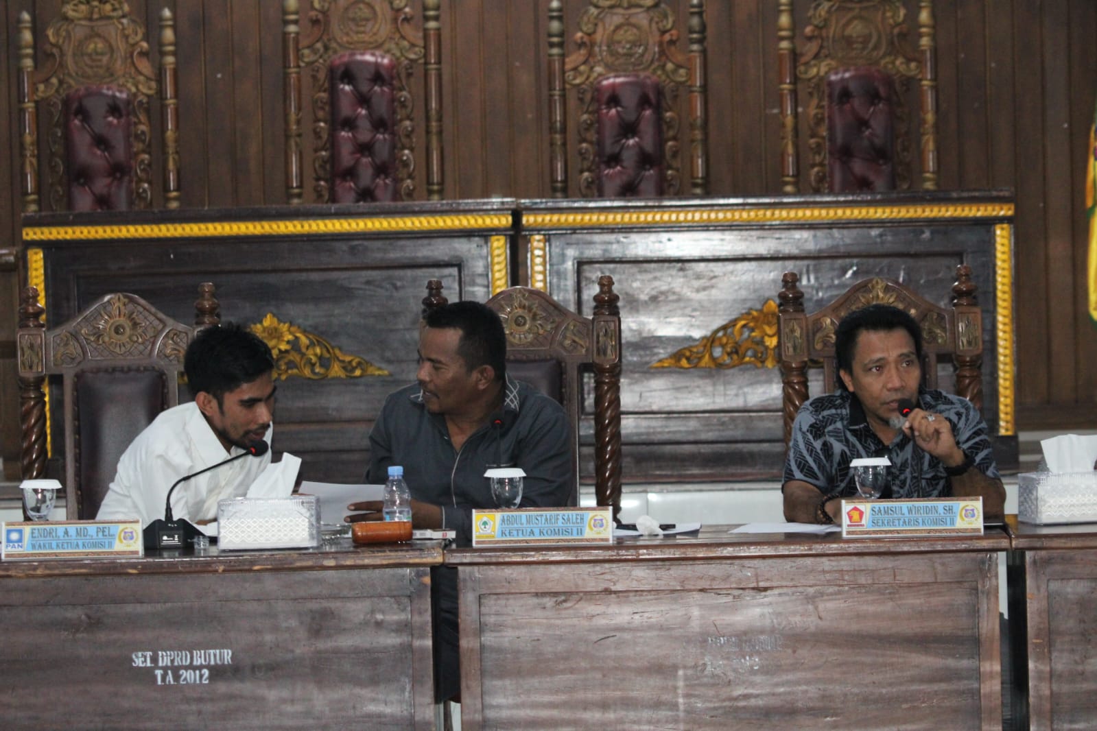 Awal tahun 2026, Komisi II Dewan Perwakil Rakyat Daerah (DPRD) Kabupaten Buton Utara (Butur) melaksanakan rapat kerja bersama Organisasi Perangkat Daerah (OPD). Kepala Dinas digilir untuk memaparkan program kerja terutama tantangan tak mudah efisiensi anggaran menyebabkan program telah dicangankan akan tak terakomodir.