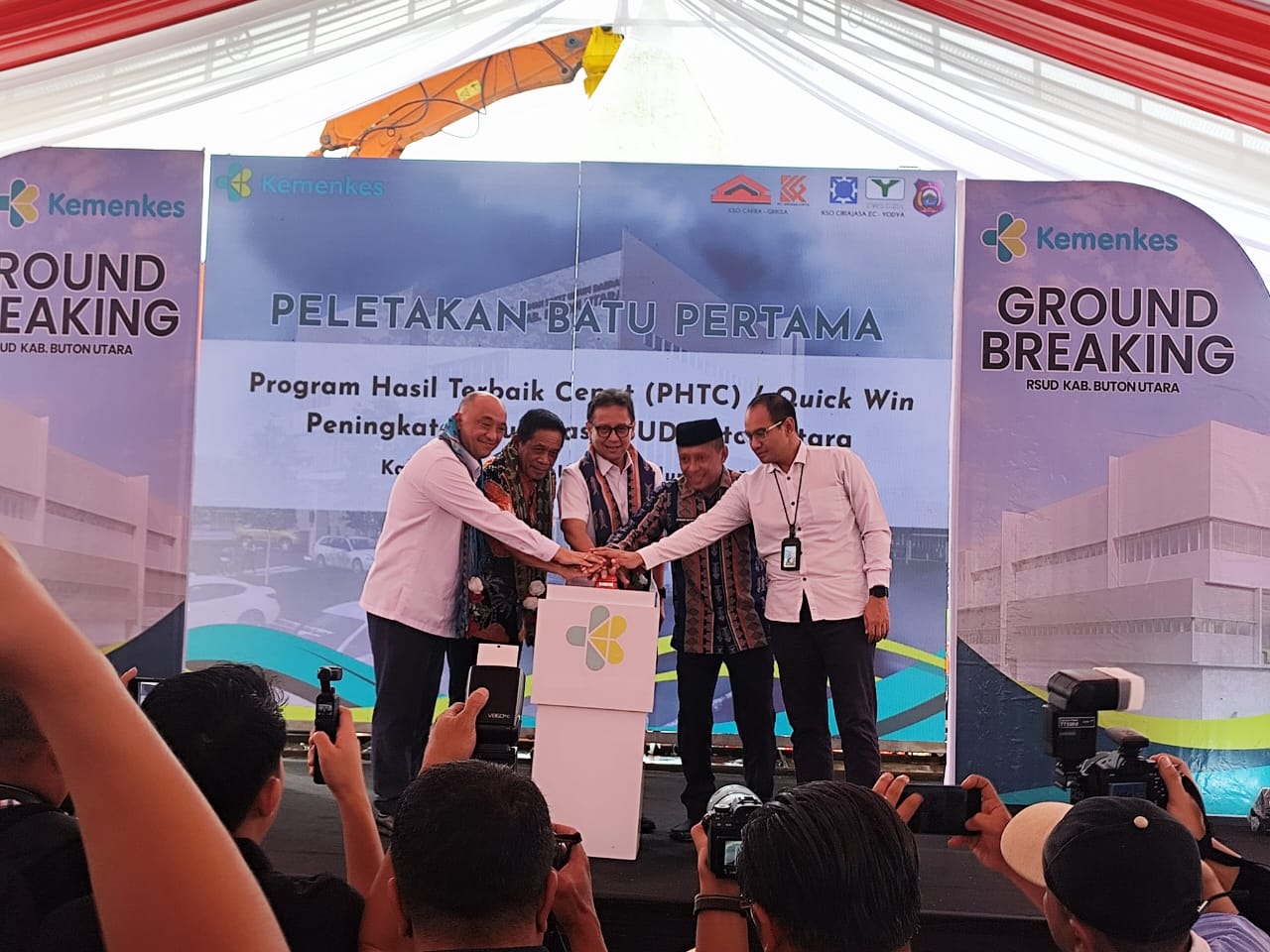 Kehadiran, orang nomor satu di Kementerian Kesehatan itu di Lipu Tinadeakono Sara itu agenda groud breaking pembangunan Rumah Sakit Umum Daerah (RSUD) Tipe C melalui program perbaikan cepat peningkatan kualitas pelayanan kesehatan.