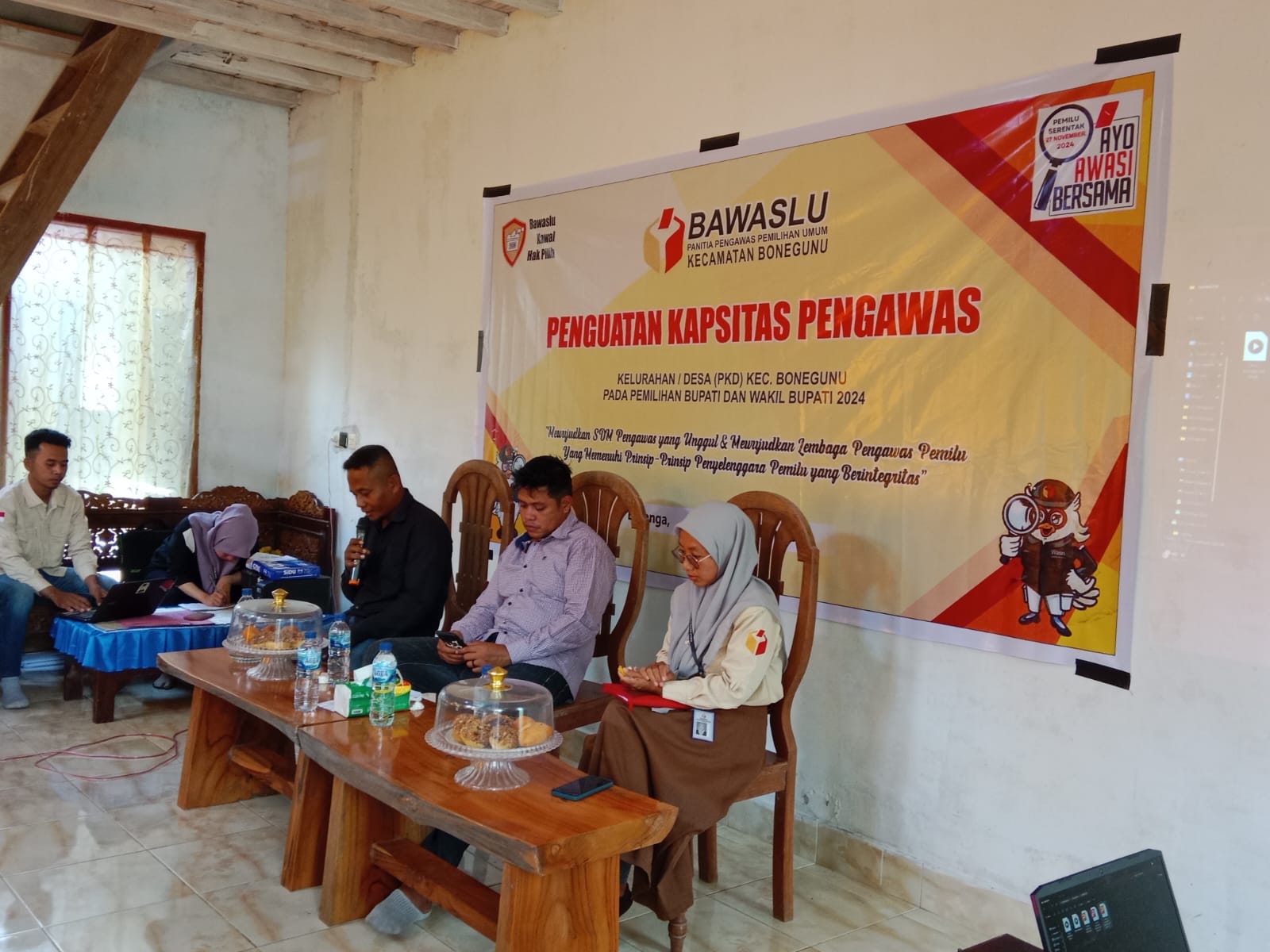 Kegiatan ini diikuti 15 orang PKD Se-kecamatan Bonegunu, dengan mengusung tema. Mewujudkan SDM pengawas yang unggul dan mewujudkan lembaga pengawas pemilu yang memenuhi prinsip-prinsip penyelenggara pemilu yang berintegritas.